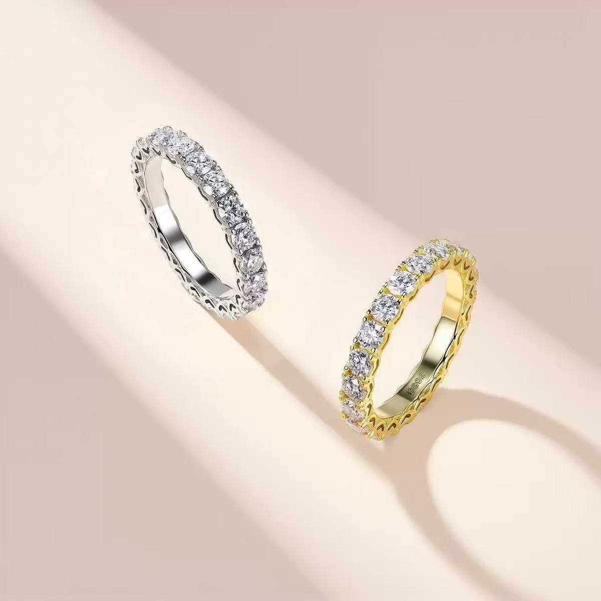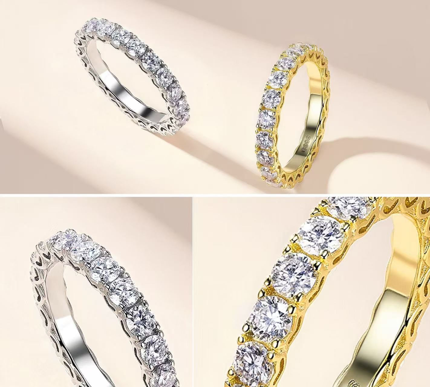 Designed as a true eternity ring, it symbolizes endless love, commitment and timeless beauty, making it a perfect choice for promise rings, stackable everyday bands, anniversary accents or a meaningful self-reward. The smooth band fits comfortably on the finger, with a sleek profile that pairs effortlessly with other stackable rings or shines beautifully on its own.